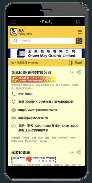 將至齊全的本地公司資料庫搬到手機! 想尋找產品或服務,yp1083隨時隨地幫你
